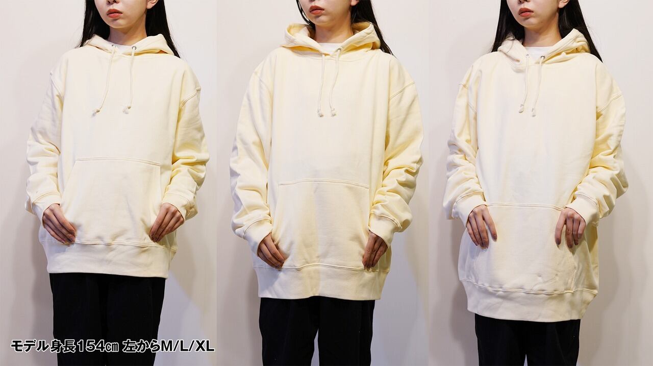 健康(ヘルシー)オリジナルのグラフィック「YORU/HIRU」を刺繍したパーカーで10オンス(コットン)のパイル生地を使用しています。
